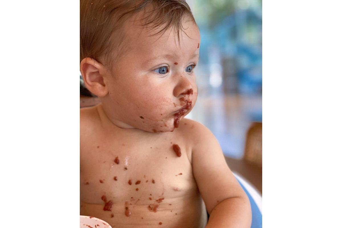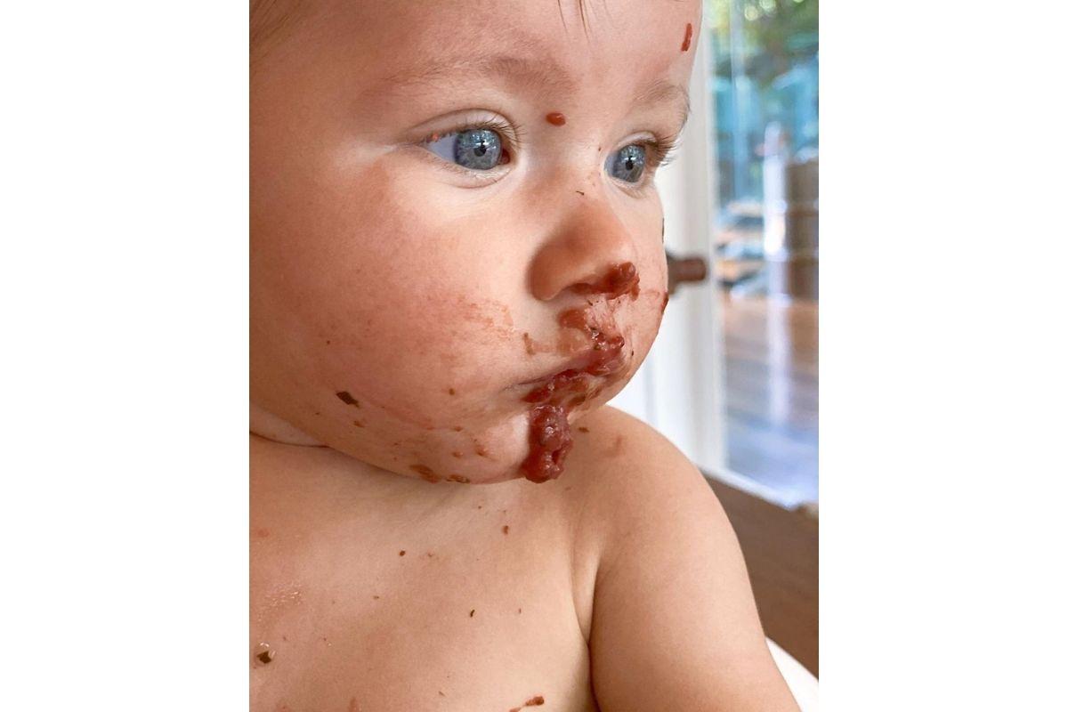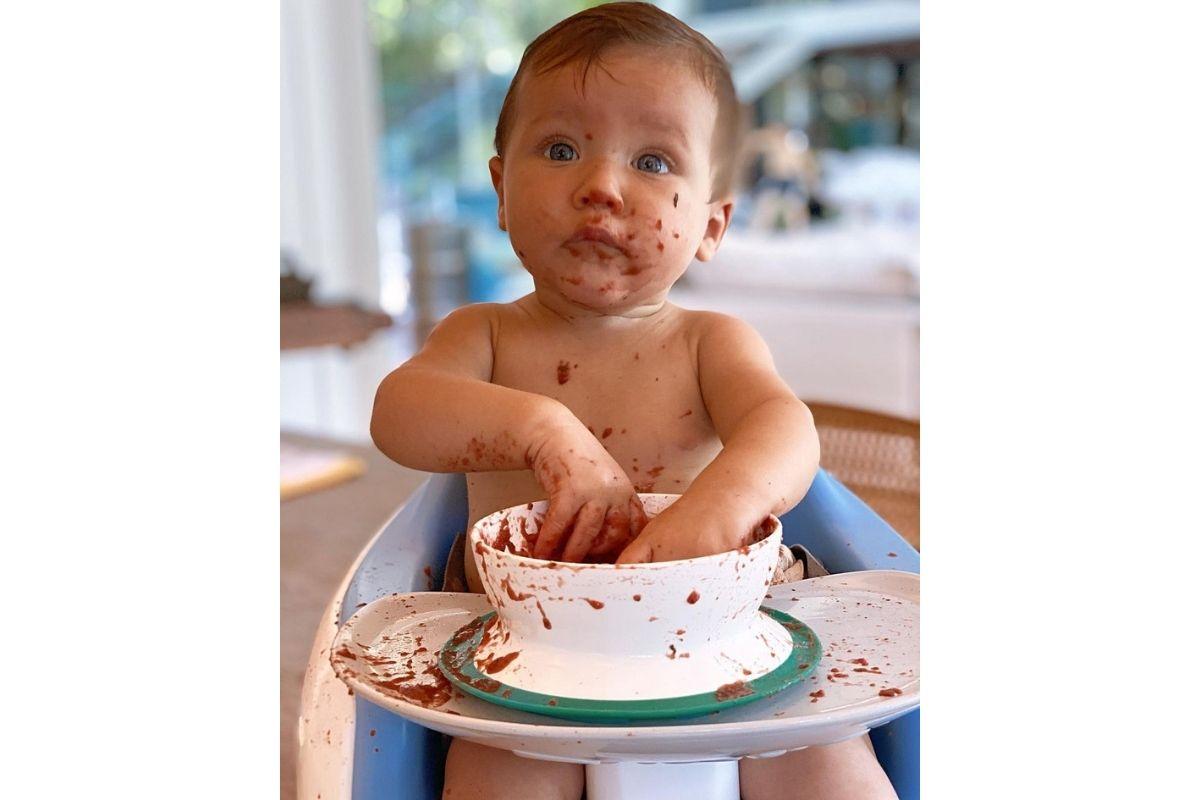 “Tem um bebê natureza que tá amando a sopinha de legumes orgânicos!!! Olha aí @brunogagliasso, nosso baby Z ta muito guloso e amando beterraba igual a mamãe! Estamos tendo zero problemas com com a introdução das comidinhas naturais e frutinhas! YES!!!”, contou Ewbank sobre a introdução alimentar de Zyan.