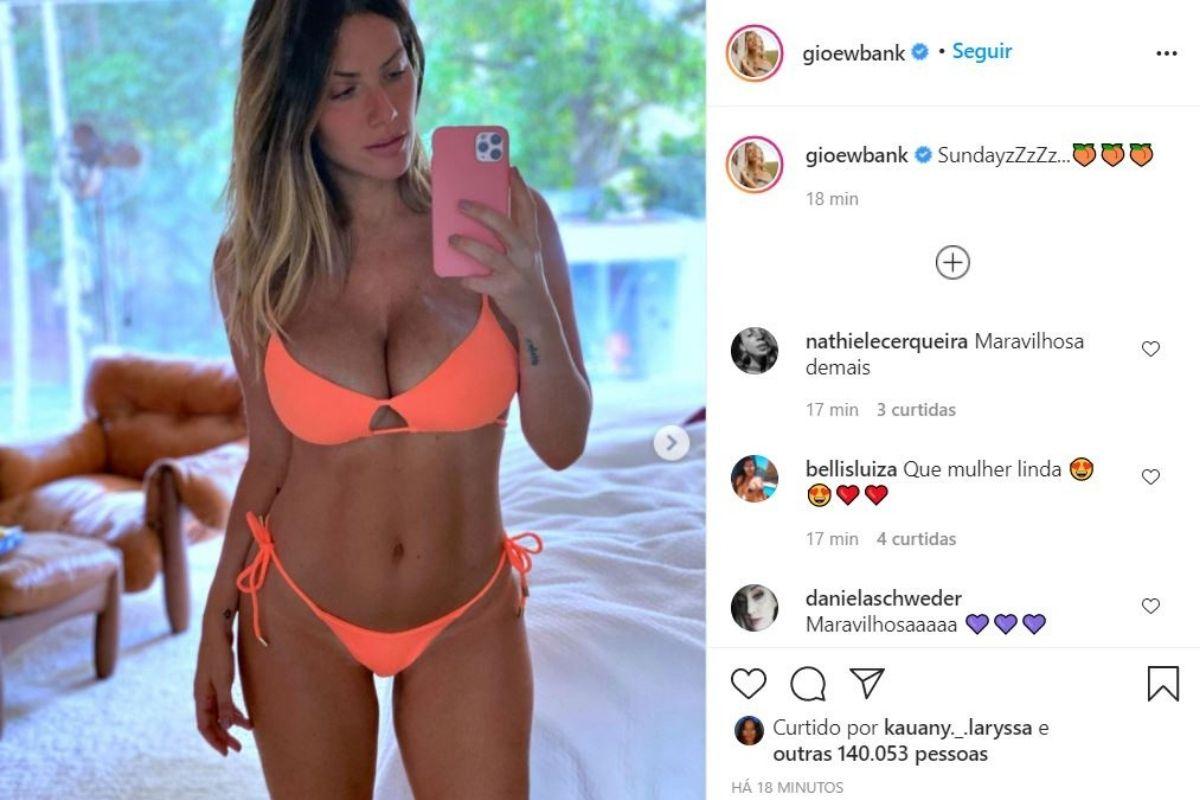 Na imagem, a apresentadora aparece com um biquíni laranja neon, exibindo as curvas 6 meses após dar à luz ao caçula. “SundayzZzZz” (Domingo em inglês), escreveu Giovanna, na legenda na publicação. Diante da imagem, os seguidores não dispensaram os elogios. “Como você consegue ser tão perfeita?”, brincou um. “Que mãe linda!”, escreveu outra. “Linda, como os filhos”, disse um terceiro.