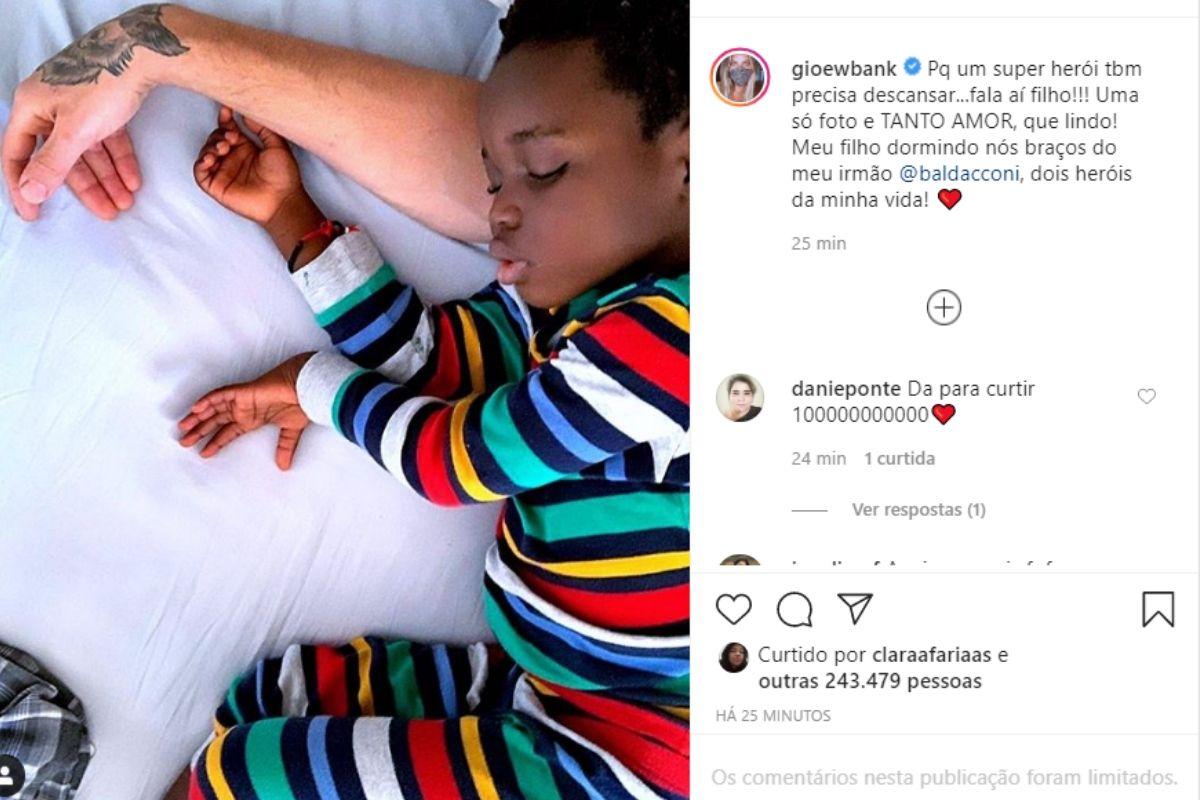 Nesta segunda-feira, 20 de julho, Giovanna Ewbank encantou a internet ao compartilhar uma foto inédita do filho, dormindo ao lado do tio, Gian Luca Ewbank. Bless, que tem 5 anos de idade, é o segundo filho de Giovanna com Bruno Gagliasso. O clique rendeu milhares de comentários, de seguidores e artistas amigos da família, elogiando a beleza do menino.