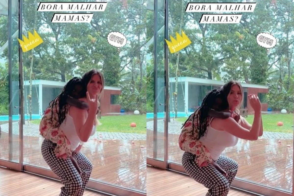 Giovanna Ewbank apareceu no Instagram fazendo exercícios com Titi nas costas (Reprodução)