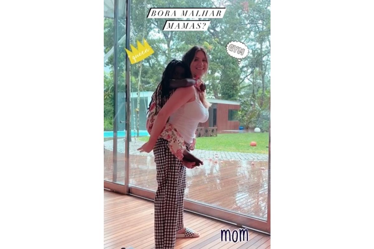 A apresentadora aparece nas imagens fazendo exercícios físicos enquanto a mais velha, Titi, está abraçada nas costas dela. Na legenda, a mãe escreveu: “Só assim para ter tempo de malhar com três filhos. Bora?”. Depois do comentário de uma seguidora, ela até acrescentou no post a hashtag #crossfilhos, se referindo ao crossfit.