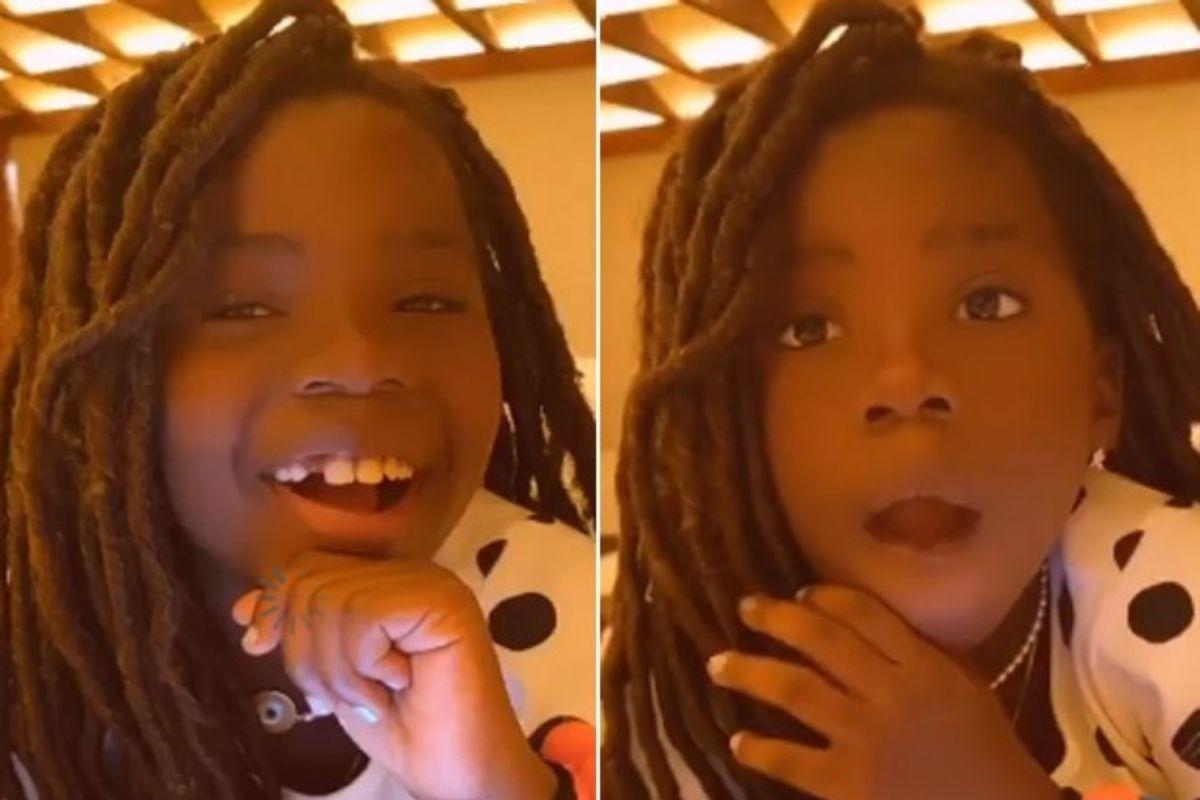 Nos Stories do Instagram Giovanna aparece já filmando a menina que está de pijama deitada na cama e pergunta como se fosse uma fã: “Senhora?! Oi, senhora, foi a senhora que foi capa de revista?”. “Sim”, responde a menina com timidez.