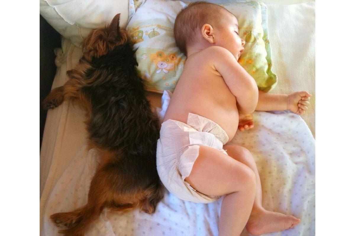 Nesta quinta-feira, 20 de fevereiro, a ex-modelo Gisele Bündchen compartilhou uma foto do filho Benjamin, hoje com 10 anos, quando menino ainda era um bebê. Benny aparece dormindo ao lado da cachorra Vida.