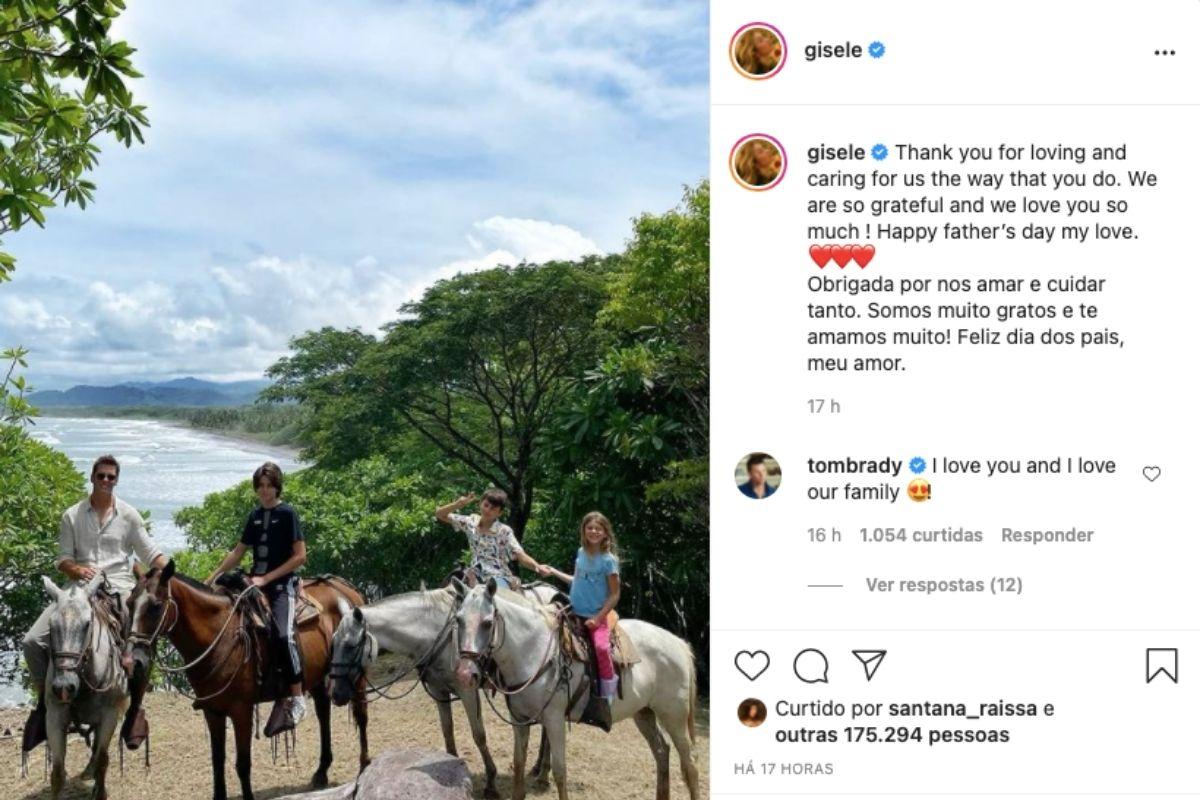 Em resposta o pai se declarou à Gisele e os filhos em resposta na publicação. “I love you and I love our family (Eu amo você e amo nossa família)”, escreveu.