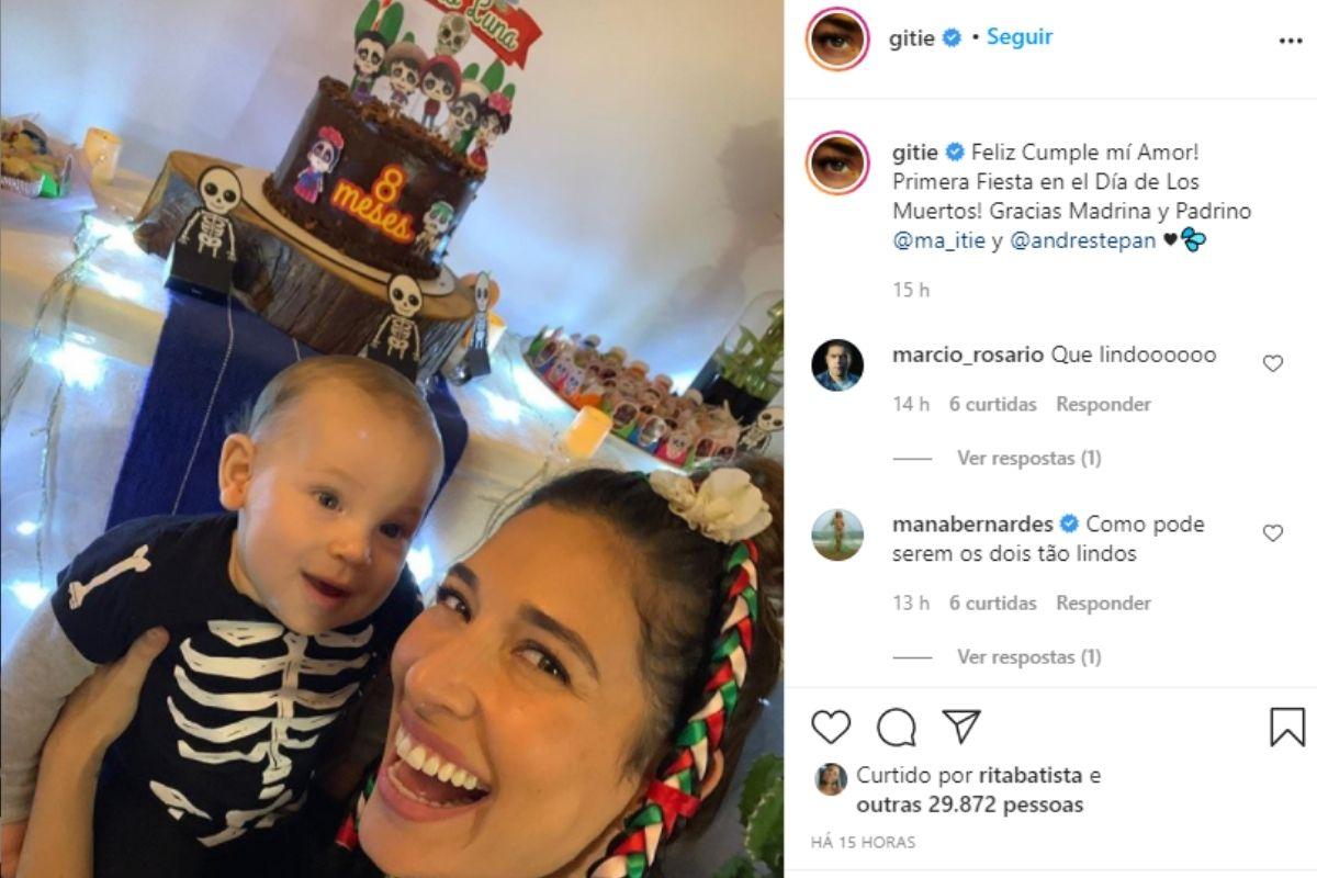 Nesta segunda-feira, 2 de setembro, Giselle Itié comemorou os oito meses do filho, Pedro Luna, que é fruto do antigo relacionamento com o ator Guilherme Winter. A festa ganhou o tema criativo do Dia de Finados, que acontece nesta data.