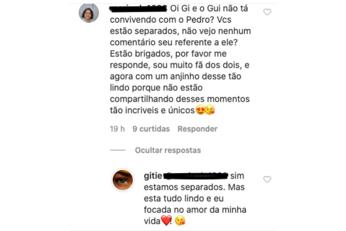 Recentemente, ela confirmou que ela e Guilherme estão se separando. Eles estavam juntos há 5 anos. Giselle falou sobre como está a vida após separação e respondeu ao questionamento de um fã.