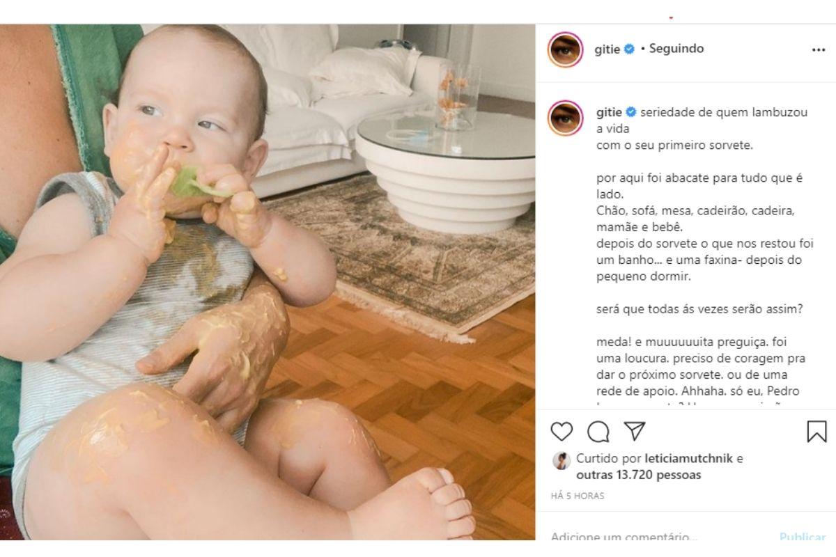 Giselle Itié usou as redes sociais nesta quinta-feira, 10 de dezembro, para compartilhar uma foto do filho, Pedro Luna. Junto com a imagem, a famosa falou sobre um momento especial para o garoto: ele experimentou sorvete pela primeira vez! E na imagem, já dá pra ver que ele amou se lambuzar com o doce.