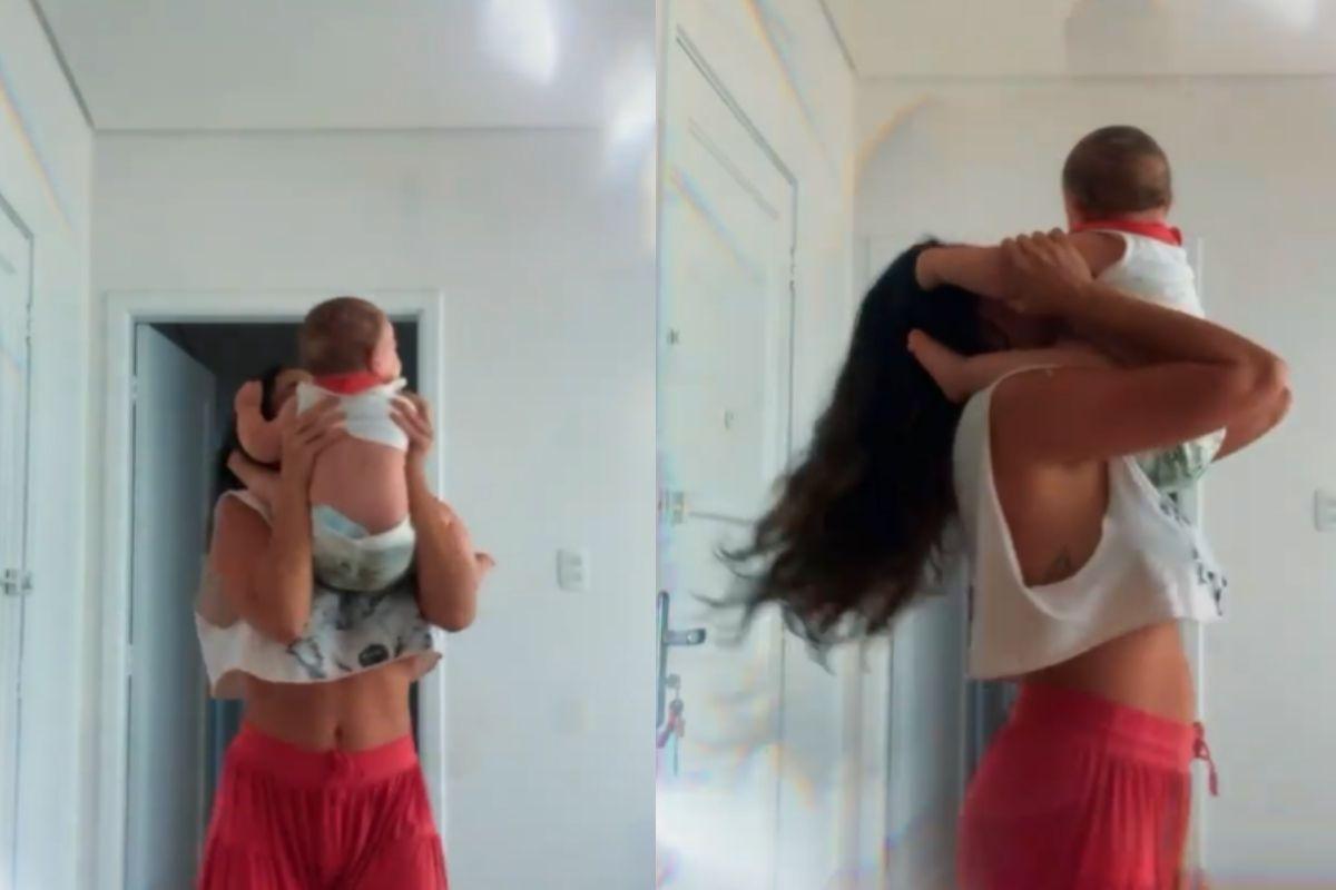 Na última segunda-feira, 28 de dezembro, Giselle Itié apareceu se divertindo com o filho, Pedro Luna, fruto do antigo relacionamento com o ator Guilherme Winter. Durante o vídeo, a atriz acabou mostrando a barriga 9 meses após dar à luz.