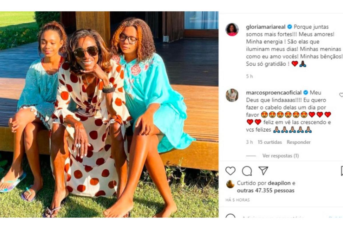 Os comentários foram apenas positivos, elogiando Glória como mãe e exaltando a parceria dela com as filhas. “Que relação bonita de se ver, lindas” escreveu uma. “Perfeita, como mãe e como pessoa”, disse outro. “Quero que eu seja uma mãe amorosa que nem você”, desabafou uma.
