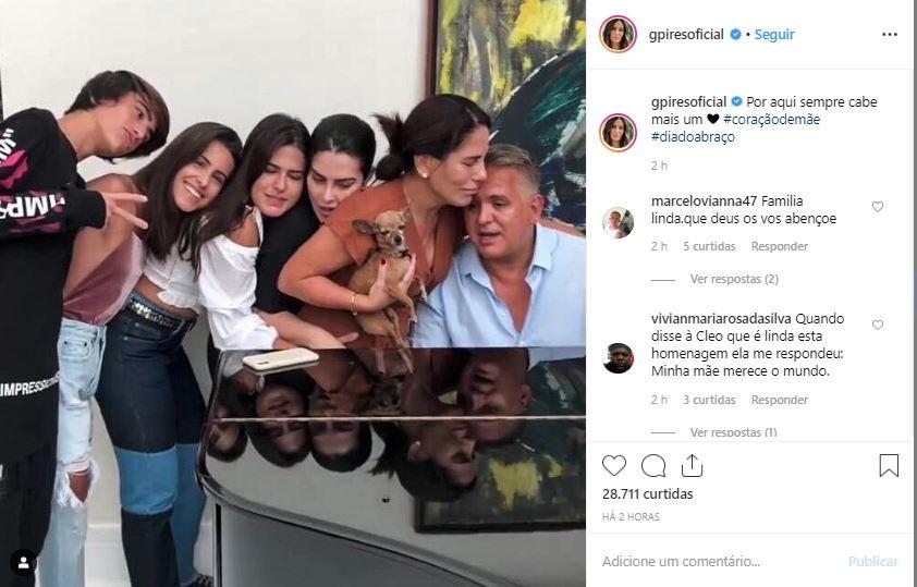 Nos comentários, os seguidores deixaram muitos elogios para Glória. “Que família linda!”, disse um seguidor. “Momentos como esse são muito preciosos, parabéns pela família, Glória”, comentou outra fã.