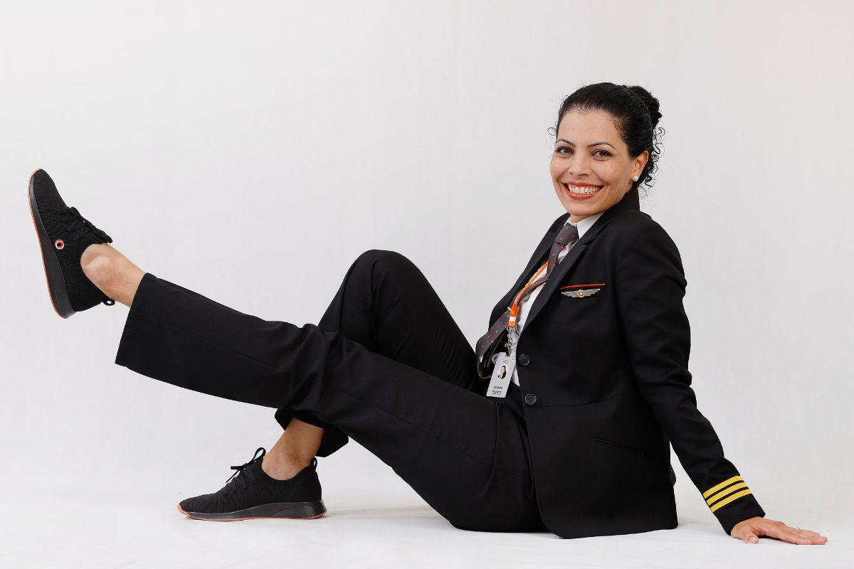 Acontece que a Gol quebrou o paradigma de anos de usar esse tipo de vestuário. Uma das copilotas, Andrea Martins, diz estar animada com a mudança: “Por muito tempo, eu usei sapato masculino, porque não encontrava modelos oxford femininos, um dos poucos que eu achava que combinava”.