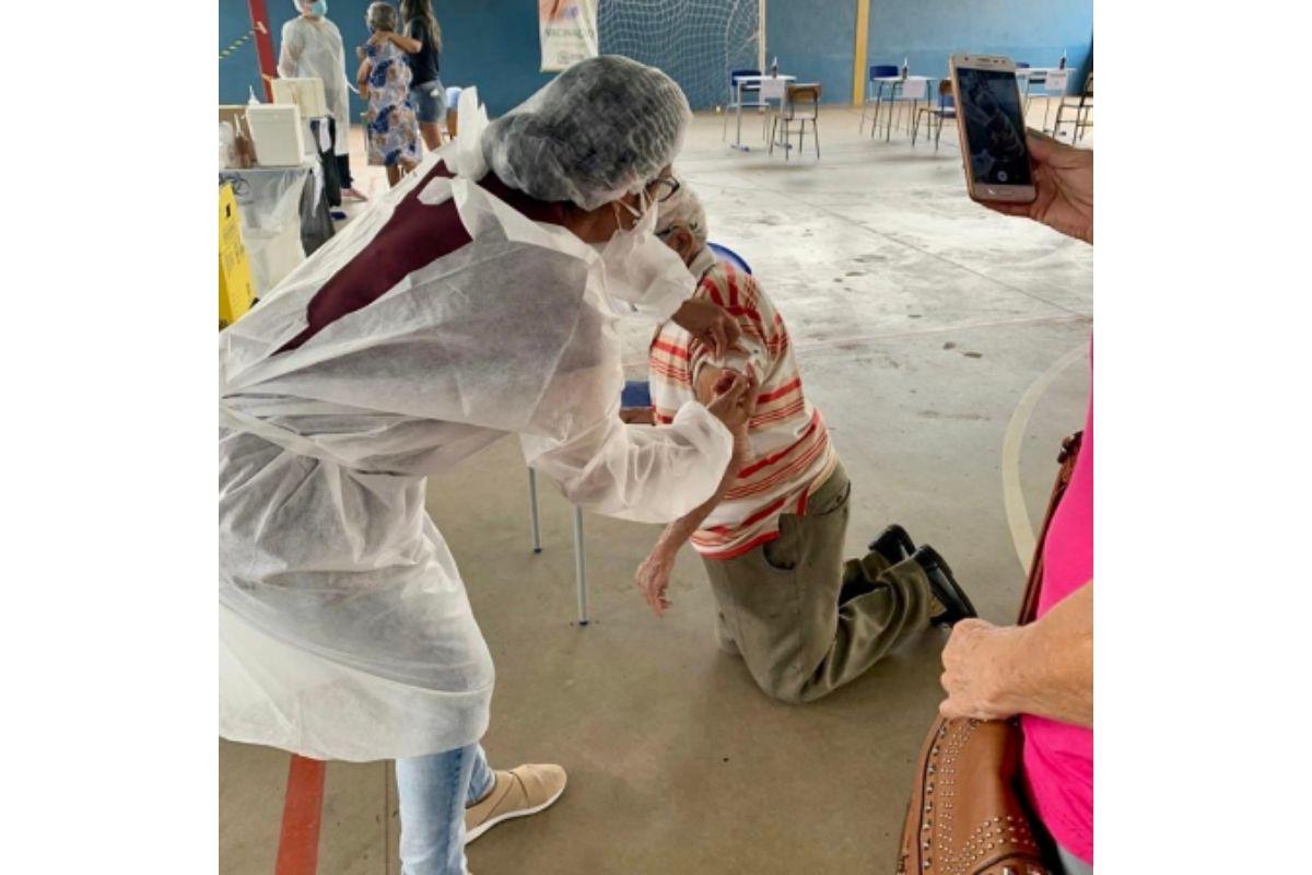 João Batista Moreira, de 96 anos, chamou atenção na internet ao tomar vacina da Covid-19 ajoelhado. O gesto foi para simbolizar a gratidão do idoso pela linha de frente contra a doença e pela ciência.