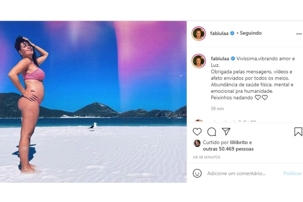 “Vivíssima, vibrando amor e Luz. Obrigada pelas mensagens, vídeos e afeto enviados por todos os meios. Abundância de saúde física, mental e emocional pra humanidade. Peixinhos nadando”, escreveu a atriz na legenda da publicação.