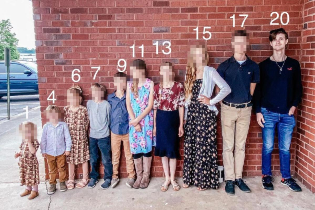 A mulher também é mãe de William, de 20 anos, Matthew, com 17, Olivia, de 15, Caroline, de 13, Anna, de 11, Gideon, com 9 anos, Gabriel, com 7, Adella, de 6, Silas, de 4 anos, e Elora, de apenas um ano de idade.