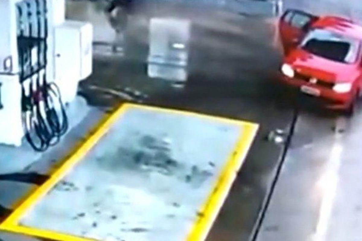 As imagens foram flagradas pelas câmeras do posto (Foto: Reprodução / R7)