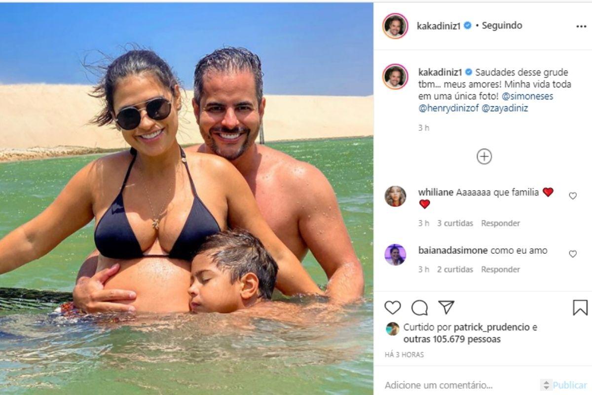 Simone está grávida de 4 meses a espera da segunda filha, que se chamará Zaya e, na foto, é possível ver que a barriga da cantora já está começando a aparecer. Os internautas amaram a publicação e logo começaram a comentar. “Que família linda!”, elogiou uma seguidora. “Que lindos, eu amo vocês”, escreveu outro. “Ataque de coração mode on” brincou uma terceira.