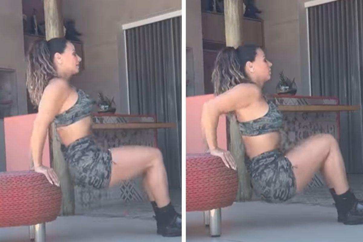 Ela seguiu falando um pouco sobre a questão dos exercícios durante a gravidez. “Durante a gestação, pra mim, não podia ser diferente. E treinar em casa com apenas o peso do meu corpo me permite ser mais saudável e levar ainda mais saúde pro meu bebê. E é isso que tento estimular em vocês. Saúde”, completou.