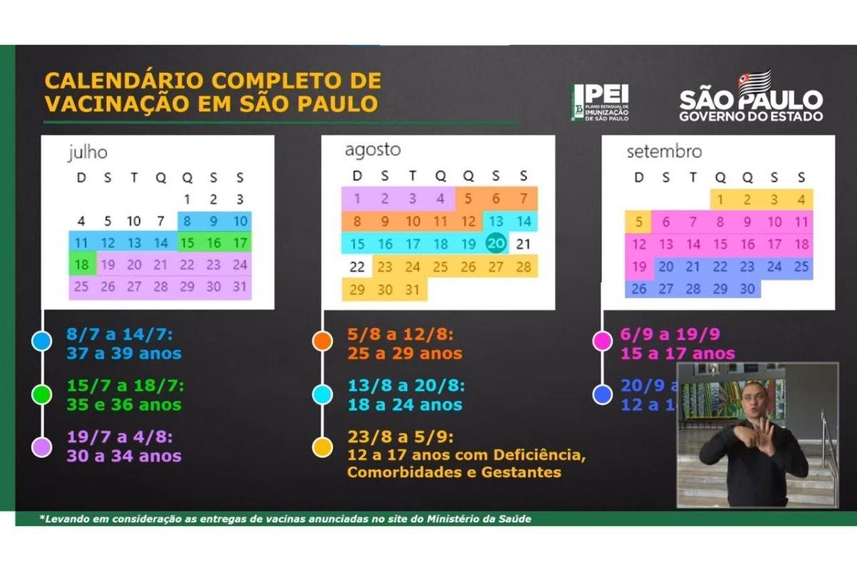 A partir de 6 de setembro, o restante da população entre 12 e 17 anos poderá receber a dose do imunizante para se proteger contra a covid-19. Neste cenário, todos os jovens e adolescentes no estado de São Paulo serão imunizados até 30 de setembro. Confira os novos calendários de vacinação completos e divulgados durante a coletiva de imprensa: