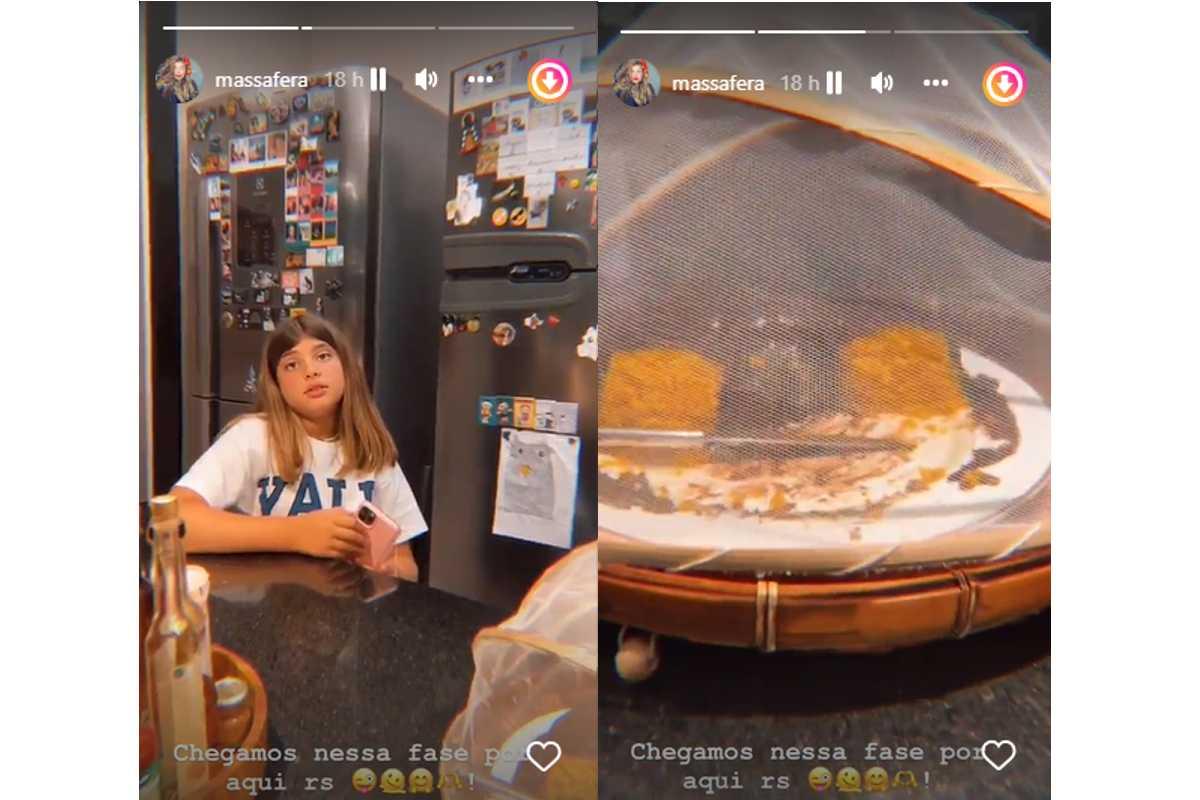Nos stories do Instagram, ela gravou um vídeo da filha que aparece parada e em silêncio por um tempo, até dizer: “Mãe, para, eu sei que você tá gravando”. Então Grazi responde: “Pois, é” e ao filmar um doce, completa: “Era o bolo”.