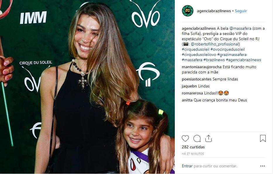 Os seguidores fizeram questão de enfatizar as semelhanças de mãe e filha. “Está ficando muito parecida com a mãe”, comentou uma fã. A cantora Anitta também elogiou Sofia: “Que criança bonita, meu Deus”.