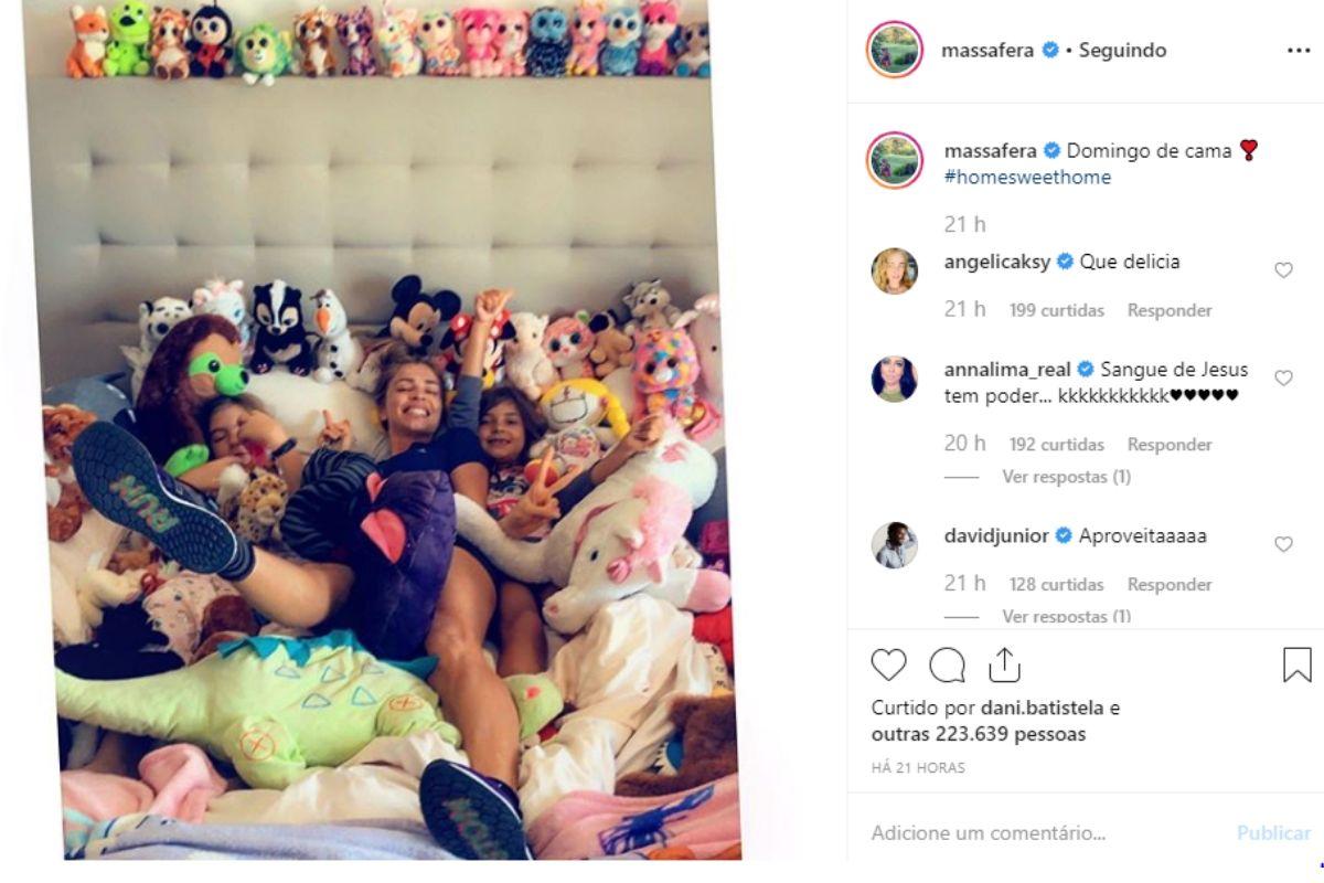 Não faz muito tempo, Grazi mostrou que domingos são literalmente dias de ficar na cama coma filha, mas acabou chamando atenção pela quantidade de brinquedo que a menina tem. A atriz publicou uma foto e as duas estavam jogadas na cama, mas a gente nem consegue ver a criança de tanto urso de pelúcia no quarto.