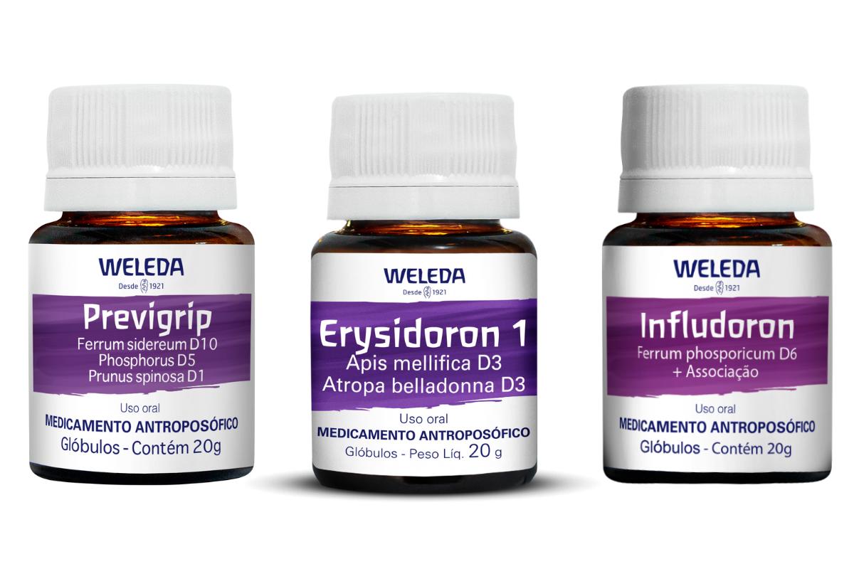 O Previgrip, em glóbulos, é ideal para a prevenção de gripes e resfriados, além de auxiliar no alívio dos primeiros sintomas. O Infludo e o Infludoron, em glóbulos, também são outras opções para o alívio dos sintomas de gripes e resfriados. Erysidoron 1 é um tratamento auxiliar para inflamações agudas e quadros febris. O Pyrit-Zinnober ajuda no tratamento de inflamações de garganta, quadros de laringite, traqueíte e amigdalite. O Rinidon atua no alívio da coriza, coceira e congestão nasal, atuando no tratamento da rinite aguda e crônica, enquanto o Sinudoron auxilia no tratamento da sinusite crônica e aguda, além dos sintomas relacionados. Saiba mais sobre a linha Weleda Cuidado clicando AQUI!