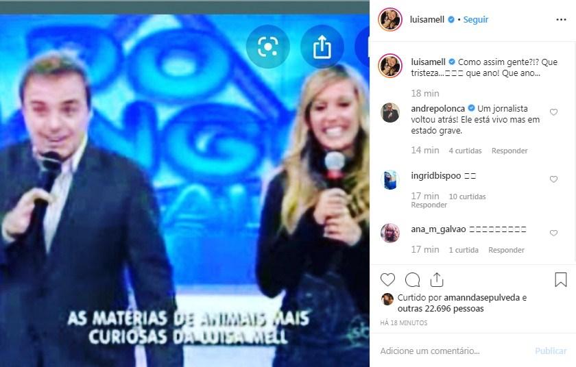 Luisa Mell também disse não estar acreditando na morte do artista. “Como assim gente? Que tristeza! Que ano!”, desabafou a influencer no Instagram.