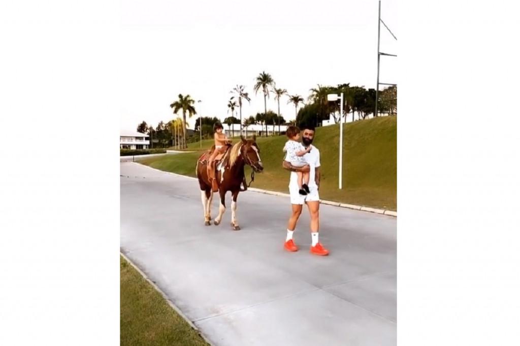 Nesta última quarta-feira, 8 de julho, Gusttavo Lima encantou ao compartilhar um momento com os dois filhos, Gabriel, três anos, e Samuel, um ano e onze meses. Ele apareceu andando a cavalo com as duas crianças na fazenda em Goiás. Na imagem, Gabriel aparece em cima de um cavalo enquanto Gusttavo Lima segura o animal com Samuel no colo.