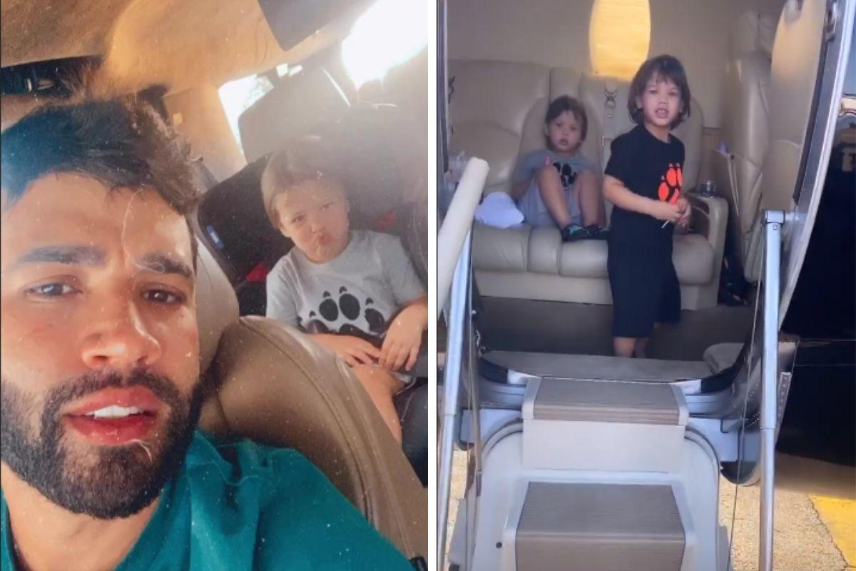 Gusttavo Lima compartilhou com os seguidores nesta sexta-feira, 2 de outubro, um passeio especial que fez com os filhos Gabriel e Samuel. O sertanejo mostrou quando a família embarcou em um passeio de jatinho, cujo destino não foi revelado. O cantor é casado com a modelo Andressa Suita, mãe dos meninos.