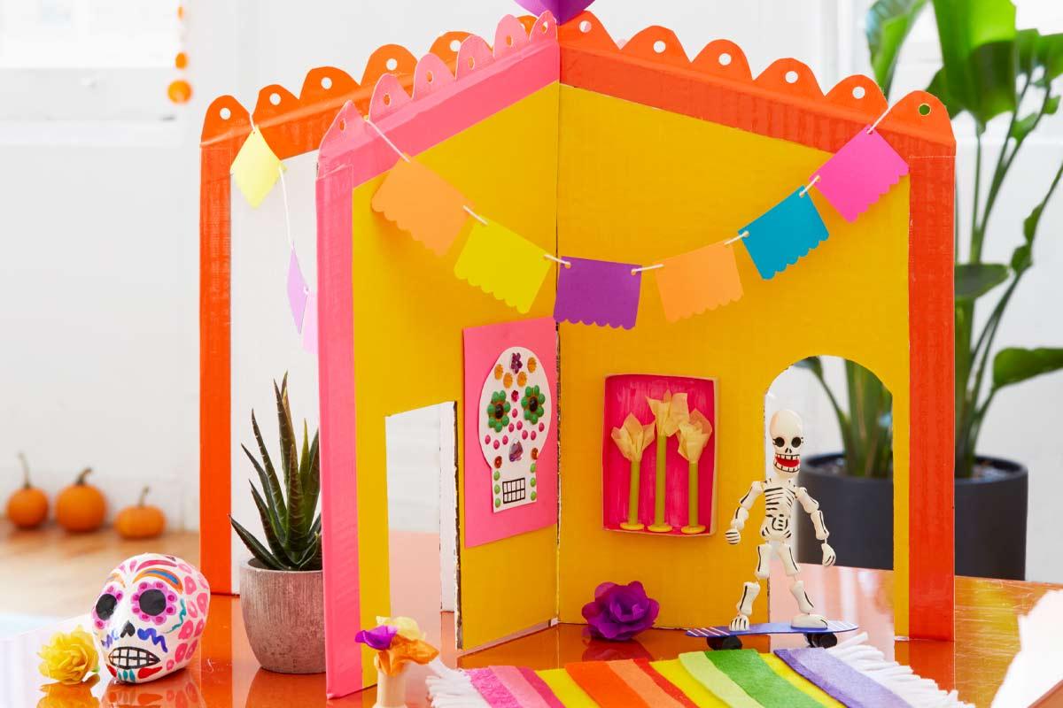 A casa temática de dia de los muertos é uma ótima opção de decoração para o Halloween e atividade manual para os seus filhos (Foto: Reprodução/ Parents)