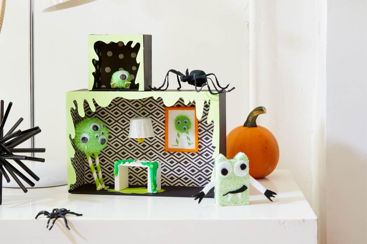 A casa monstro com slime é uma pedida divertida de decoração para o Halloween