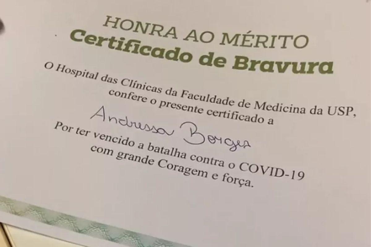 Na última terça-feira, 19 de maio, o Hospital das Clínicas de São Paulo comemorou a milésima paciente com covid-19 a receber alta. Andressa Borges de 42 anos, foi testada positivo para o vírus e precisou ficar 14 dias internada, sendo nove deles na Unidade de Terapia Intensiva (UTI). Felizmente ela apresentou melhora no quadro, e hoje deixou o hospital com um certificado de bravura em mãos.