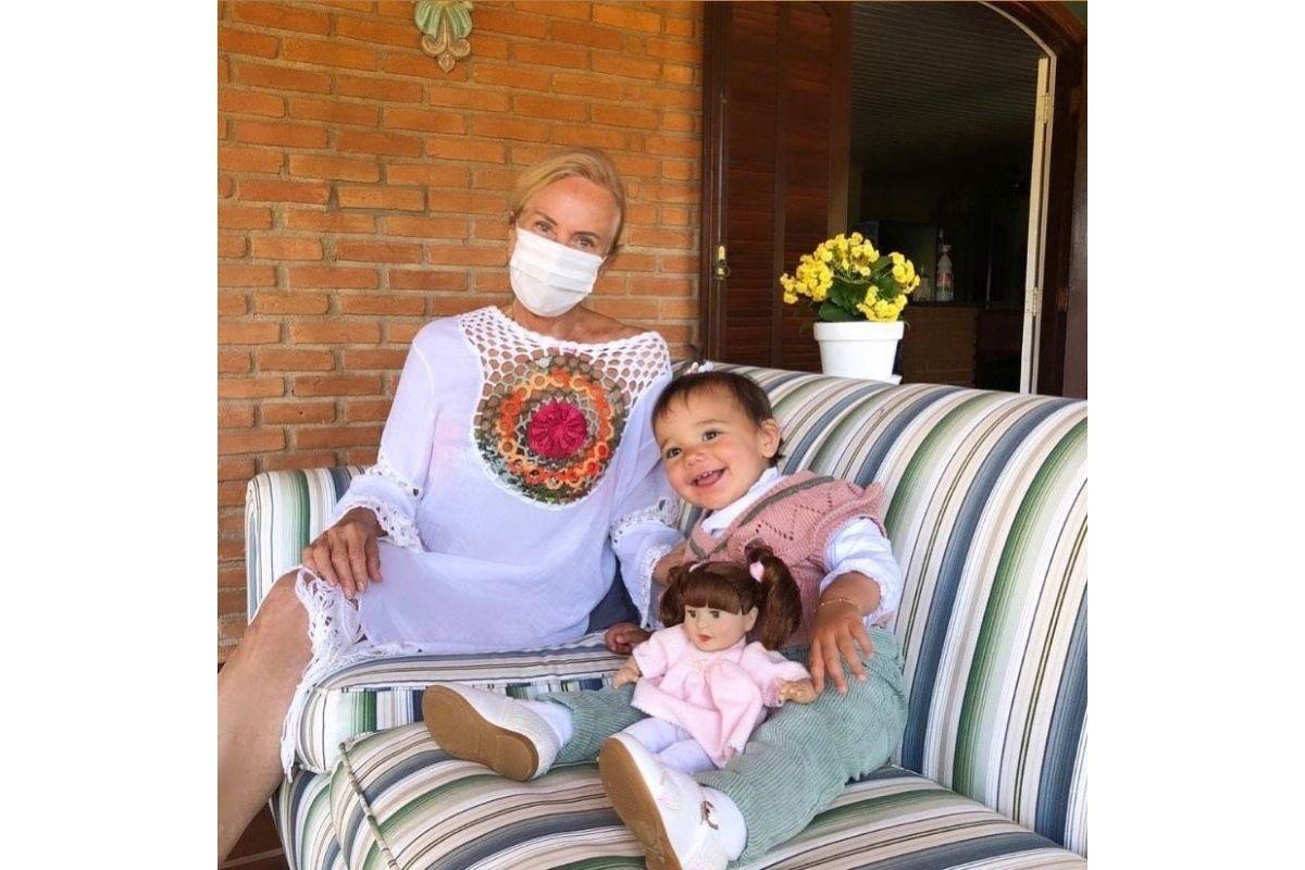 Na legenda, da publicação, ela escreveu: “Depois de 5 meses, matando as saudades da minha netinha Manu. Desejo que tudo isso passe logo para que eu possa beijar, abraçar e pegá-la no colo. Muito difícil ficar perto sem poder tocá-la, mas pelo menos vê-la sorrindo, se divertindo, aqueceu meu coração, e transbordei de amor”, disse na foto ao lado da neta de 1 ano.