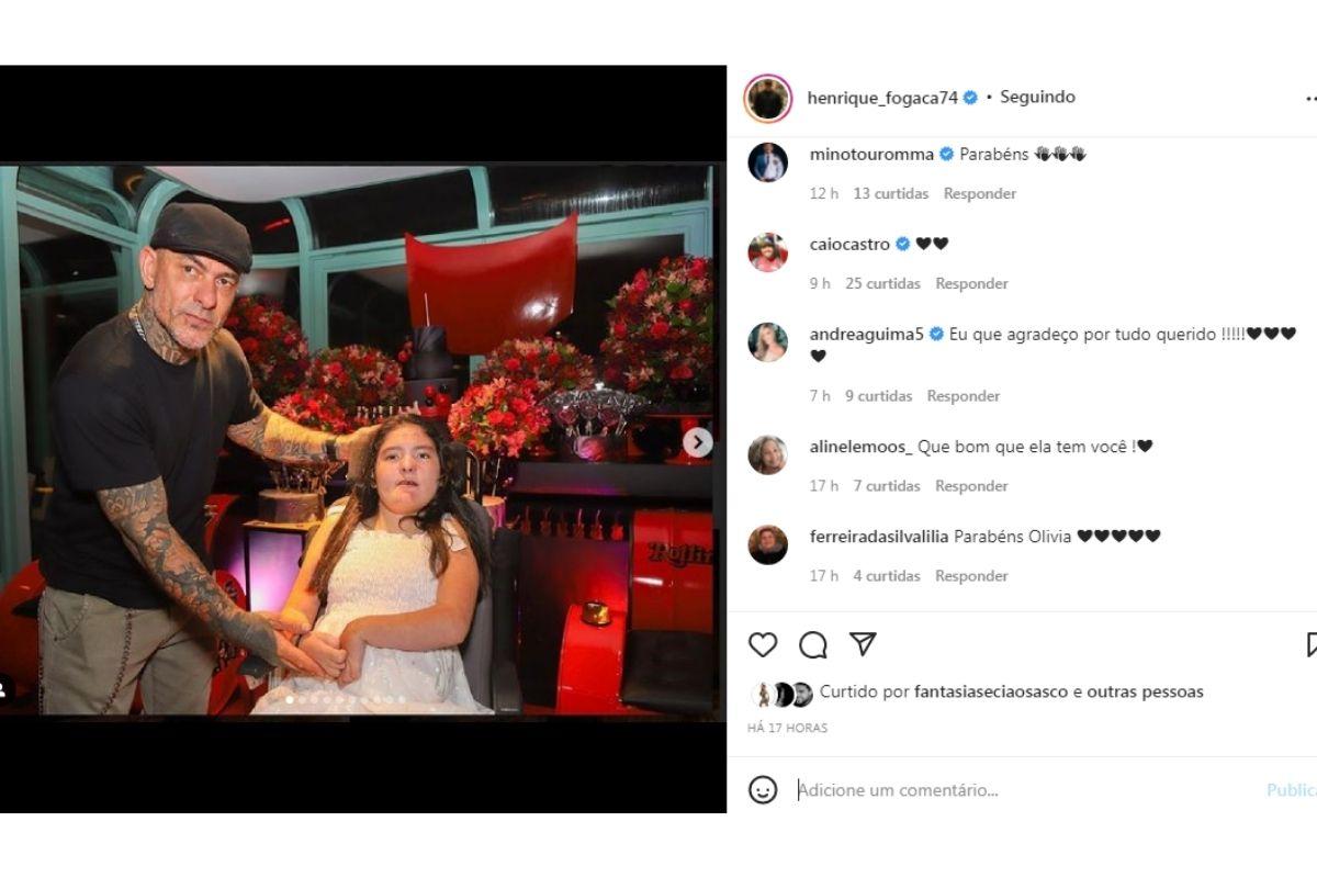 Nesta segunda-feira, 21 de fevereiro, Fogaça relembrou nas redes sociais um momento especial da vida dele: o aniversário de 15 anos da filha. Com muito amor, o pai de Olívia escreveu “Boa noite. Dia 11/11/2021 minha linda filha Olívia completou 15 anos de idade e fizemos uma festa maravilhosa com o tema “Rock and Roll”, pois a Olívia ama música e tudo que se movimenta”.