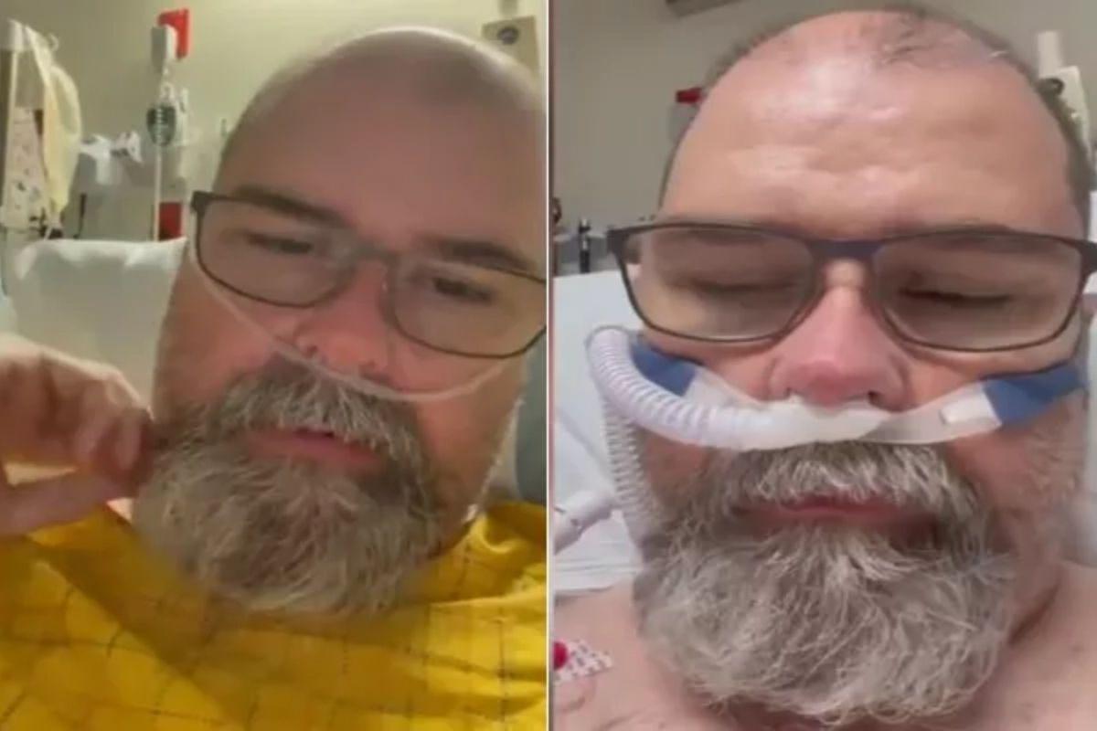 Nas imagens, os olhos do homem se enchem de lágrimas ao falar sobre o assunto. “Você não quer acabar como eu. Estou com dificuldade para respirar. Posso ter que ser entubado se ficar pior”, diz.