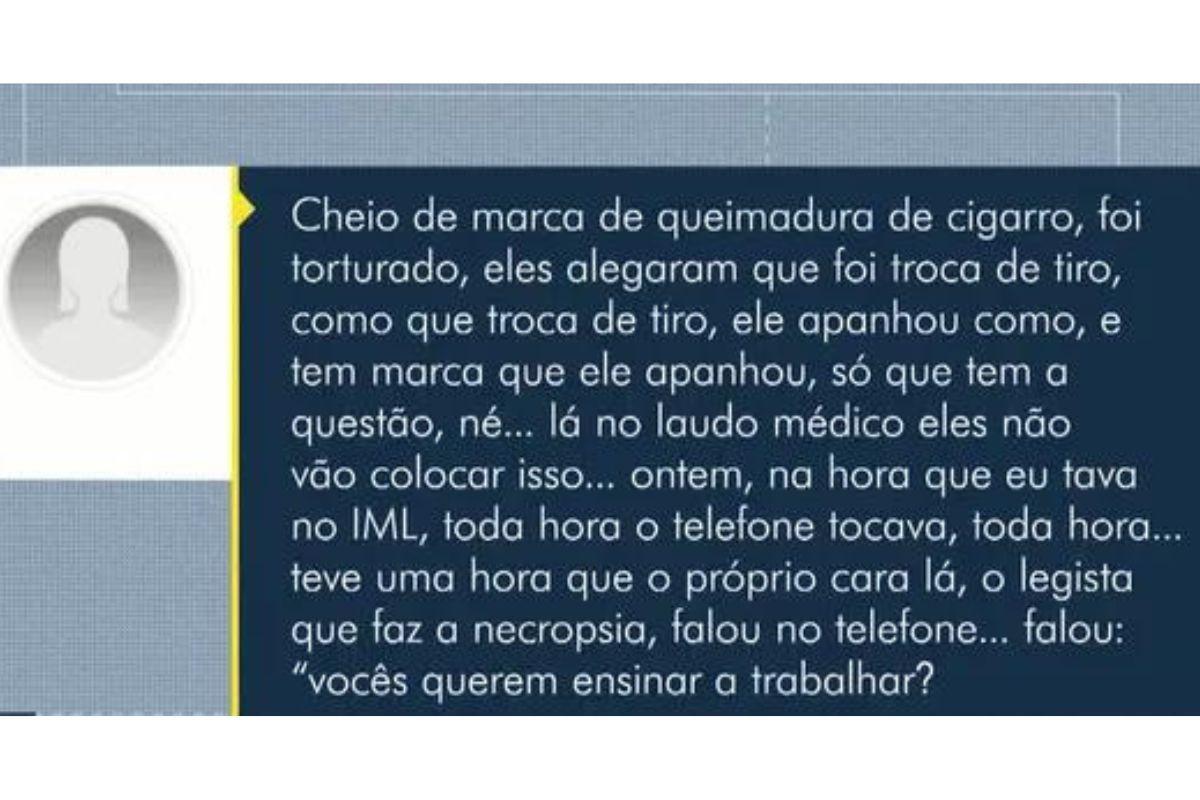 De acordo com a viúva, instantes após a suposta execução, um dos filhos dela, de 13 anos, voltou para casa e viu a situação. “Perguntaram: ele mexe com vocês? Maltrata? Meu filho disse que não. E foi ai que esse policial [voltou ao beco e] deu dois tiros para o alto, para fingir que foi o meu esposo”.