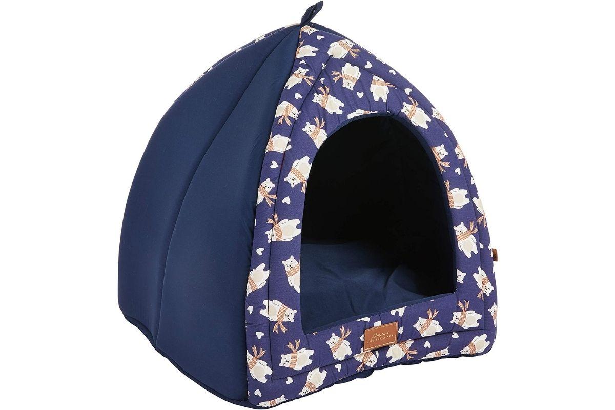 Se você ainda não sabe se o seu cachorro prefere dormir apenas com a caminha ou se ele curte mais a toca, esse modelo é o ideal. Isso porque ele é dois em um e pode ser usado dos dois jeitos muito facilmente. Outra dica legal é que você pode mudar os formatos pensando ano estações do ano: cama no verão e toca no inverno, para proteger do frio. É do tamanho grande e além de prática é também confortável e possui uma almofada de fibra siliconada que não retém a umidade. Clique AQUI e compre na Amazon.