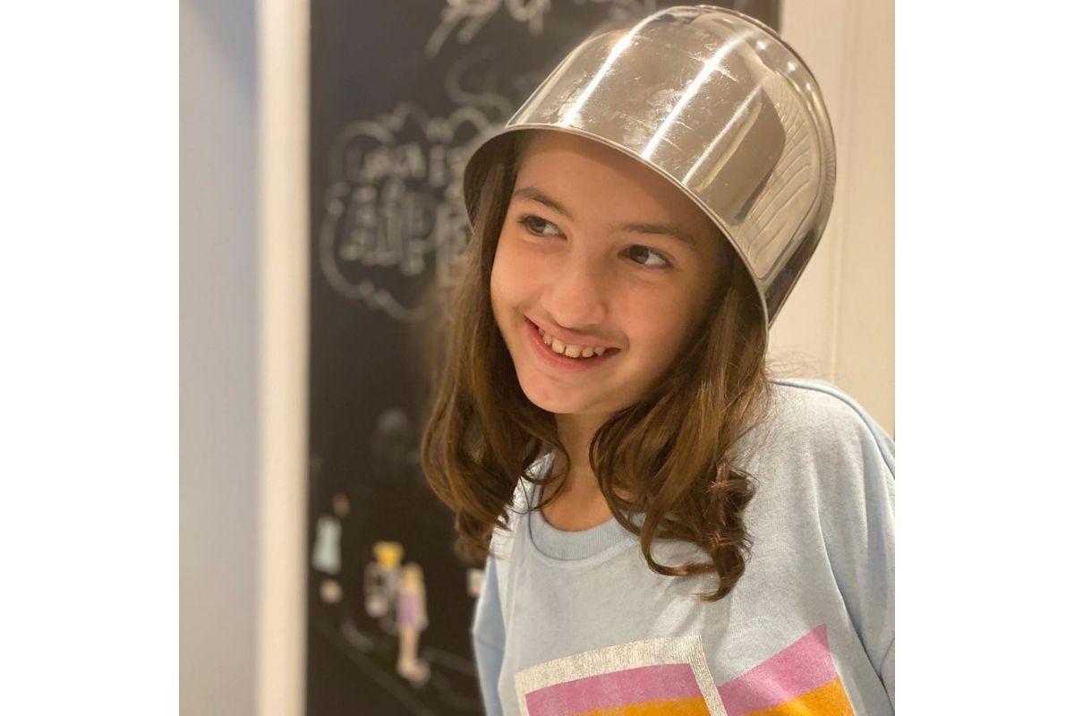 Na sequência de imagens, Ingrid relembra momentos marcantes de diferentes épocas da vida da menina – desde a amamentação, até ela se divertindo na cozinha com uma panela na cabeça, fazendo graça.