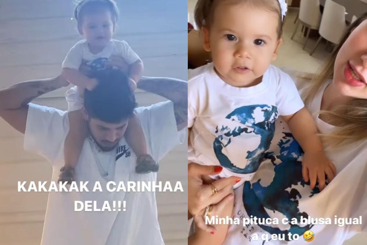 “A mãe não está inimiga da moda sozinha, a mãe está inimiga da moda com ‘nenezinha’ dela”, brincou Virginia no vídeo postado. Ela mostrou que na camisa das duas está com o escrito “Eu tenho o melhor pai do mundo” e, ao falar isso, o marido Zé Felipe respondeu concordando.