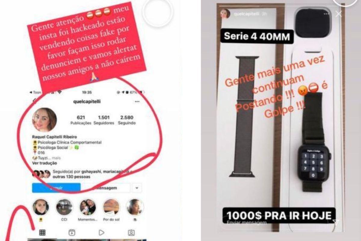 Quem olhasse as publicações do Instagram de Raquel quando ela foi hackeada, por exemplo, via ofertas de Apple Watch, PlayStation e até mesmo uma rifa, que custava R$ 50,00 para ajudar uma entidade. “Como eu sou psicóloga e estou sempre postando coisas, cinco pessoas caíram no golpe, mas era nítido a diferença, pelo PIX e a conduta do hacker, que escrevia muita coisa errada”, conta. Todo o terror durou por 10 dias. Os golpistas, inclusive, trocaram o perfil dela de privado para público, assim qualquer pessoa poderia ver as vendas de uma falsa Raquel.