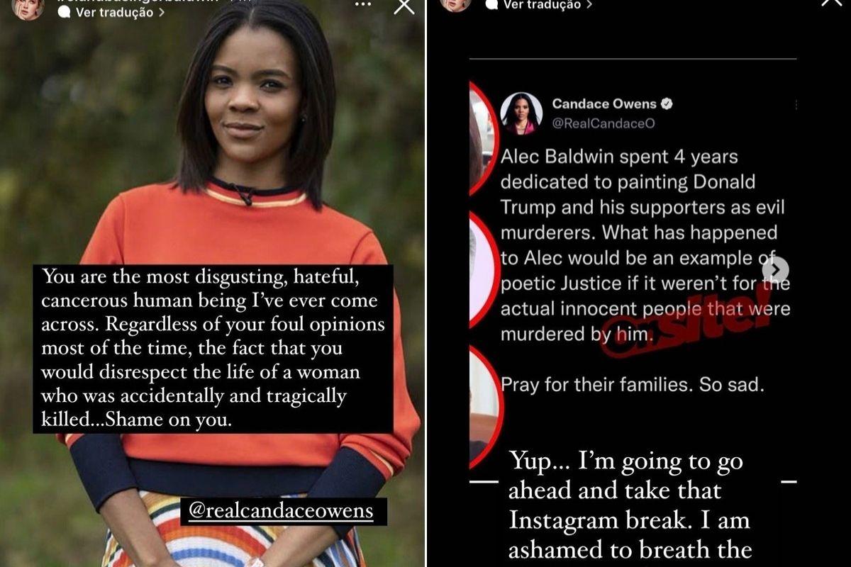 Ireland compartilhou os posts de Candice nos Stories do Instagram e respondeu as acusações. “Você é o ser humano mais nojento, odioso e canceroso que já conheci. Independentemente de suas opiniões sujas na maioria das vezes, o fato de que você desrespeitaria a vida de uma mulher que foi morta acidental e tragicamente … Que vergonha. Sim… vou prosseguir e fazer uma pausa no Instagram. Tenho vergonha de [respirar] o mesmo ar que esta mulher”, iniciou o desabafo.
