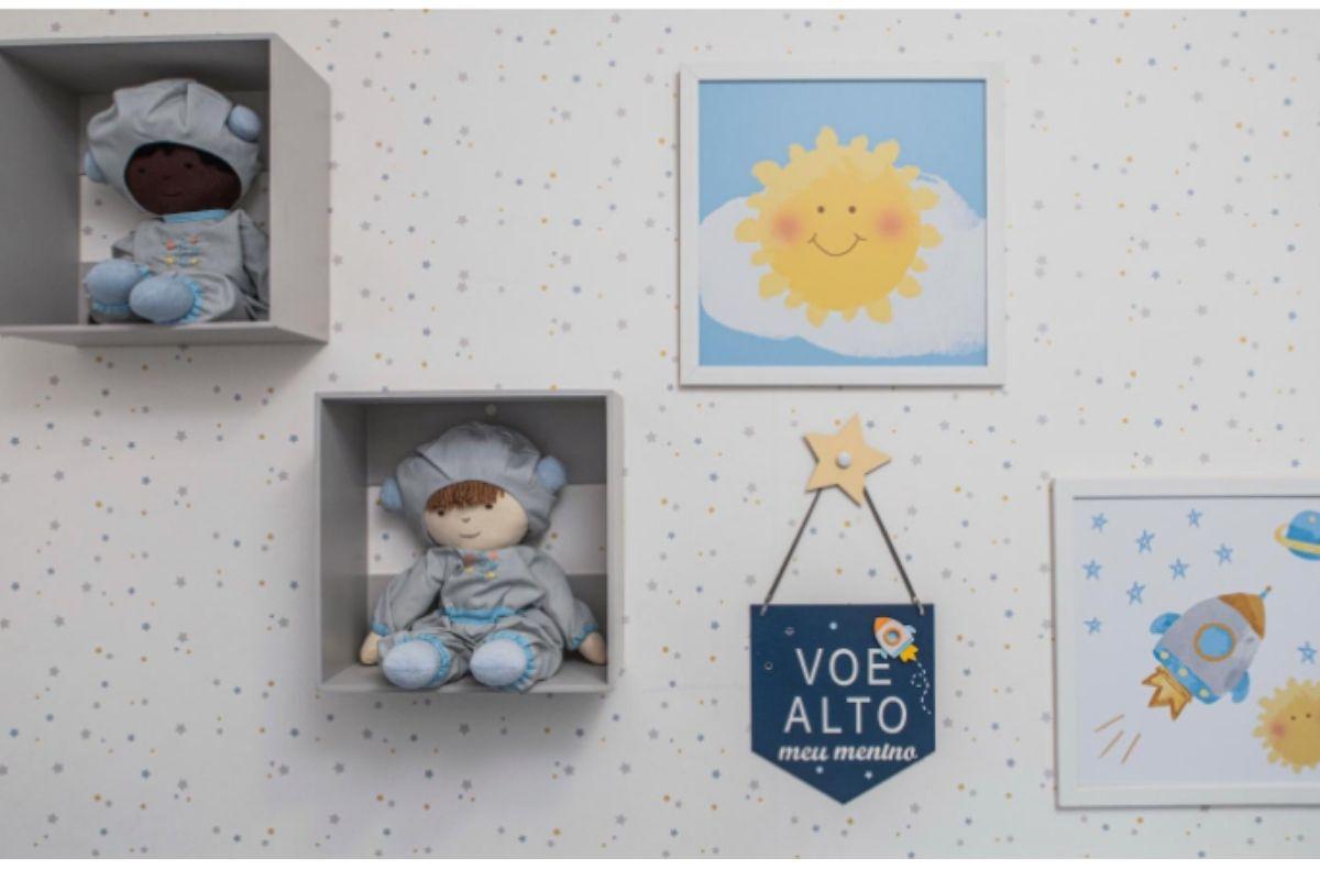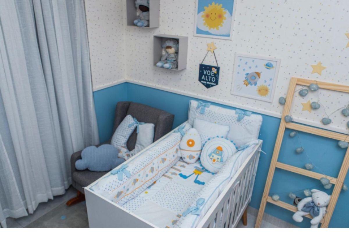 Repleto de estrelas, planetas, foguetes e astronautas bordados, o enxoval se define como uma escolha lúdica.  A mãe revelou que amou como a decoração equilibrou conforto, muita fofura e funcionalidade. E fez questão de destacar: “A escolha do tema foi a realização de um sonho meu”.