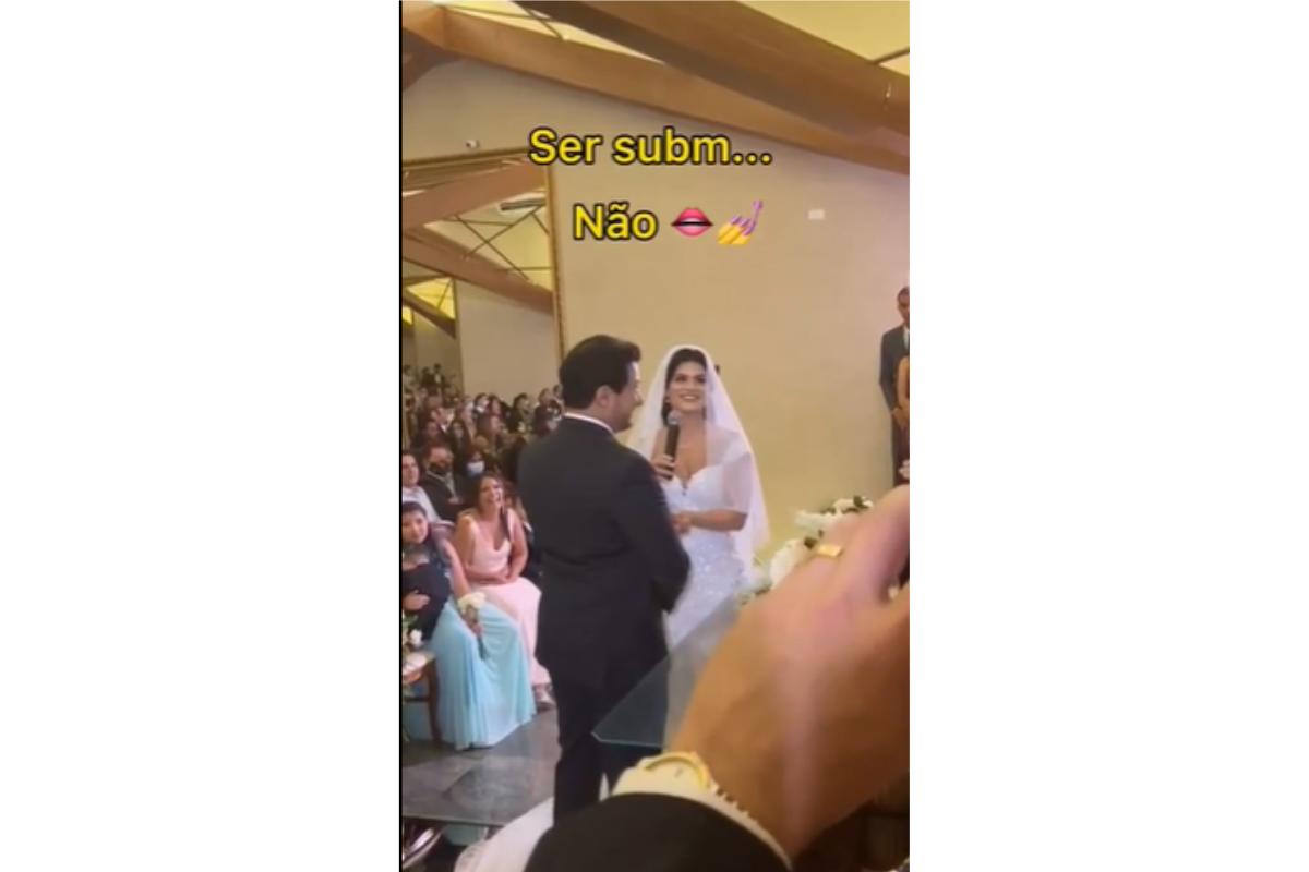 “Acho que a palavra submissa, do jeito que eu conheço e está no dicionário, não deveria mais ser usada nos dias de hoje, quando a mulher trabalha, é independente e busca no casamento uma parceria. Eu tinha visto várias cerimônias das casamento, mas nunca tinha ouvido nada semelhante. Então, quando eu ouvi no meu casamento, tomei um choque e não segurei a espontaneidade e falei…”, contou Inaiã com exclusividade ao portal de notícias do G1.