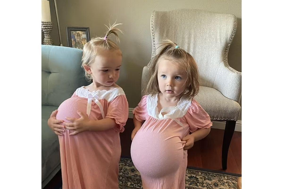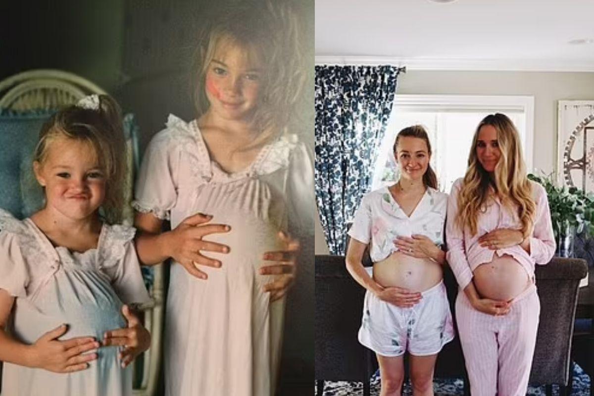 As irmãs Bri Dietz (35) e Chaulet Barba (33), de San Diego, Califórnia, viralizaram na internet ao recriar foto em que aparecem segurando balões em baixo do vestido na infância, simulando uma gestação. Mas dessa vez, elas estão grávidas de verdade! E o melhor: ao mesmo tempo.