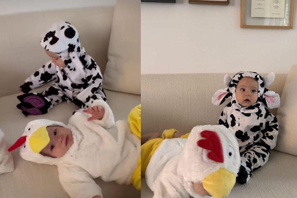 A mãe de primeira viagem pediu ajuda dos seguidores para escolher as fantasias dos filhos por meio de uma enquete no Instagram, as duas opções eram macacões de ‘pintinho’ e ‘vaca’. Em seguida, os fãs da influenciadora votaram e com o resultado ela vestiu os bebês e registrou o momento que encantou a todos.