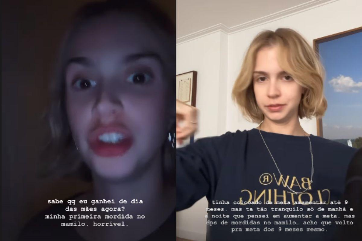 ”Eu tinha colocado de meta amamentar até 9 meses, mas está tão tranquilo só de manhã e a noite que pensei em aumentar a meta, mas depois de mordidas no mamilo… acho que volto para meta dos 9 meses mesmo”, comentou a influenciadora nos vídeos.