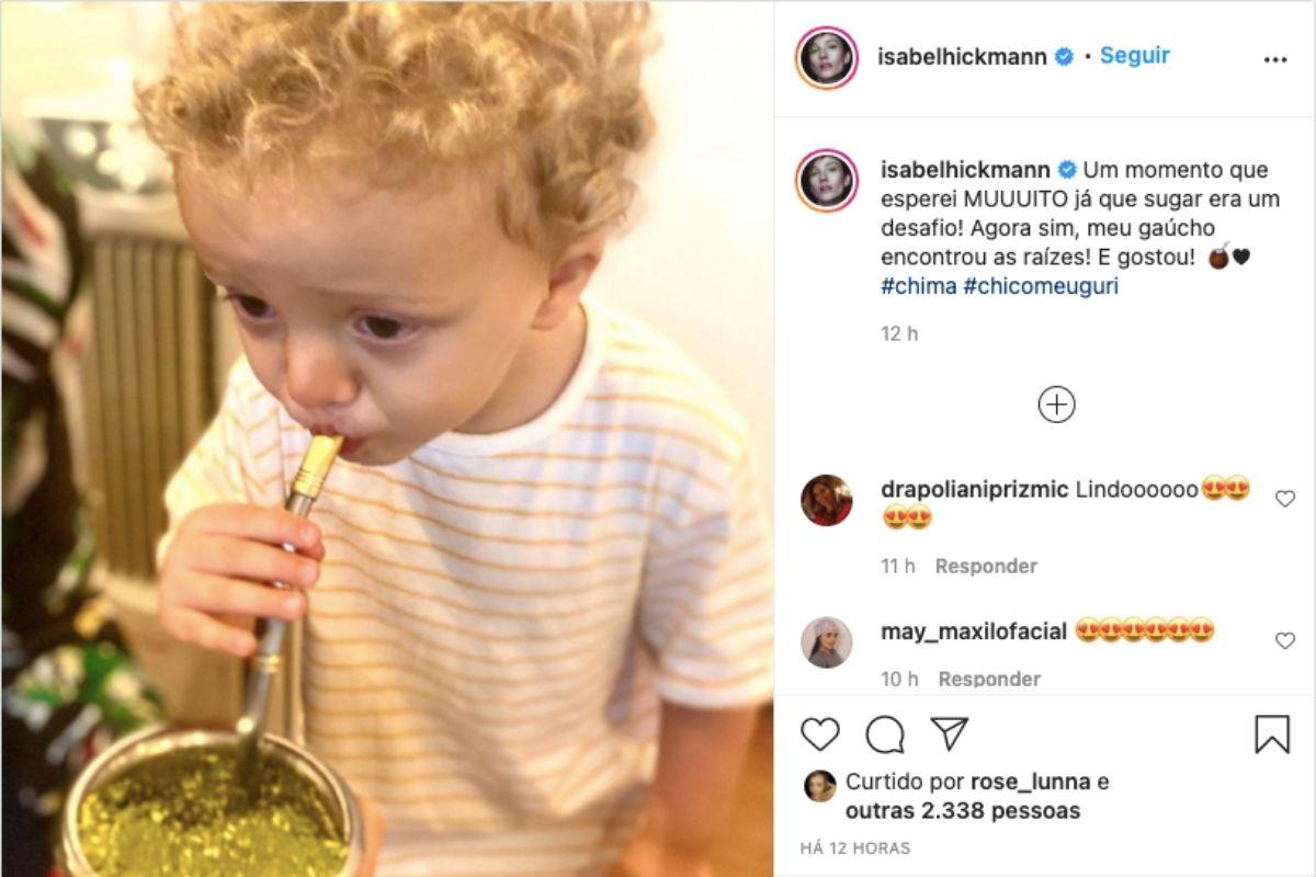 Na última terça-feira, 5 de janeiro, Isabel Hickmann compartilhou momento super especial nas redes sociais. A mãe publicou a foto do filho, Francisco tomando chimarrão de canudo após cirurgia para lábio leporino. Ela contou que o dia foi extremamente aguardado, tendo em vista que com o lábio leporino ele tinha dificuldade de sugar.