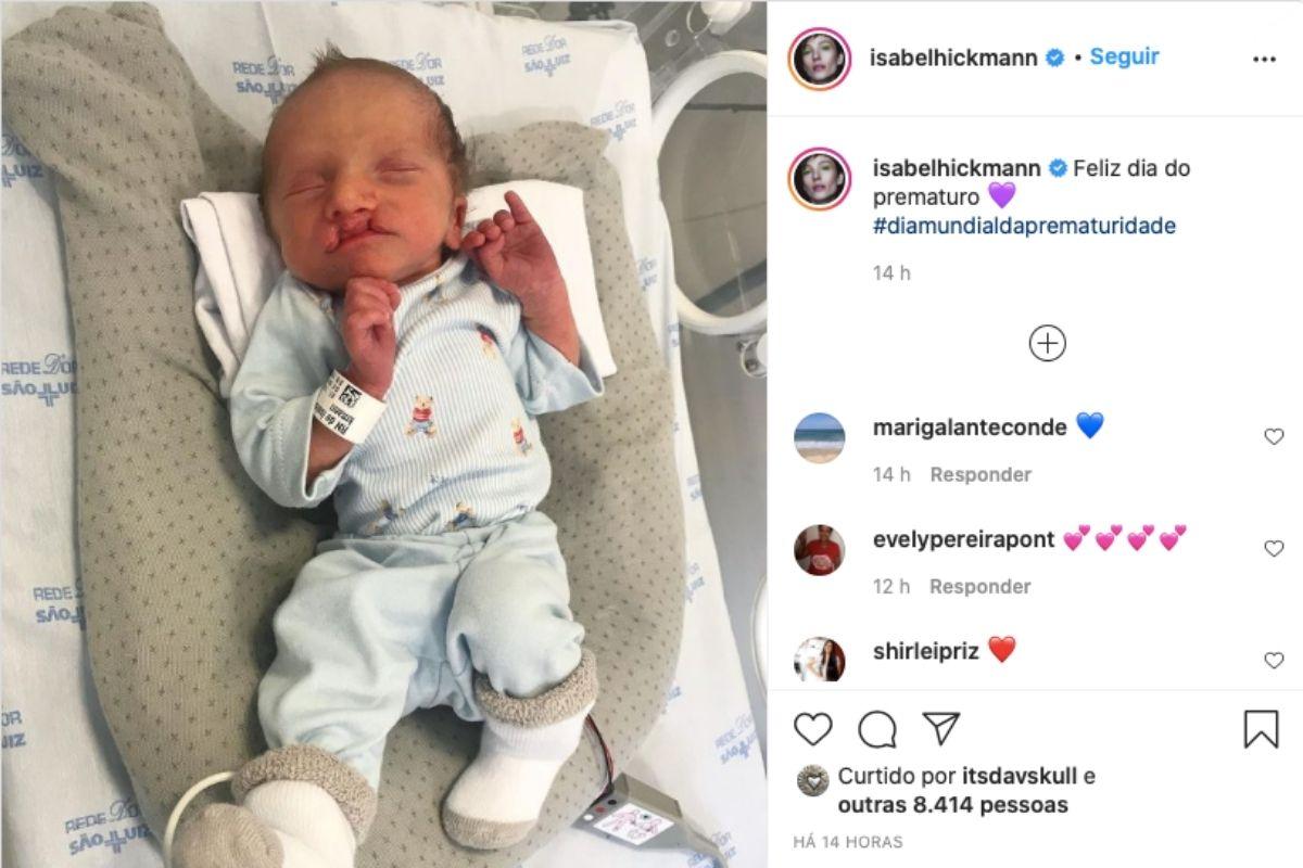 Na última terça-feira, 17 de novembro, Isabel Hickmann relembrou do nascimento do filho nas redes sociais com foto do menino que nasceu em 2019 na maternidade. A criança, fruto do relacionamento da mãe com Arlindo Conde, nasceu prematuro e com lábio leporino, tendo apenas 1 ano ele já passou por mais de uma cirurgia.