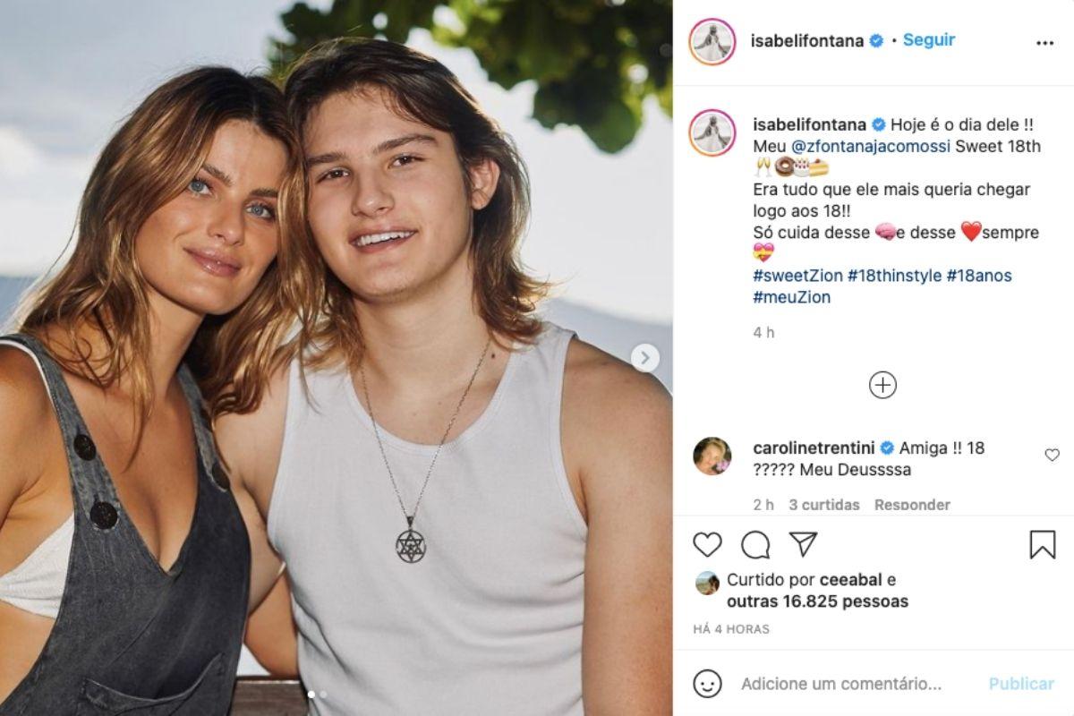 Isabeli Fontana fez homenagem especial ao filho Zion, que completou 18 anos neste domingo, 28 de fevereiro. “Hoje é o dia dele !! Meu @zfontanajacomossi Sweet 18th. Era tudo que ele mais queria chegar logo aos 18. Só cuida desse cérebro e desse coração sempre”, escreveu a modelo na legenda da publicação.
