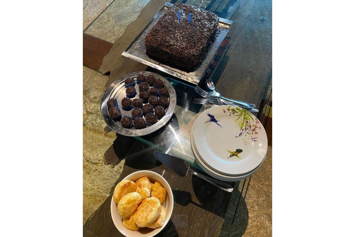 A festinha teve bolo de chocolate, brigadeiro e pão de queijo! (Foto: Reprodução / Instagram / @isisvalverde)